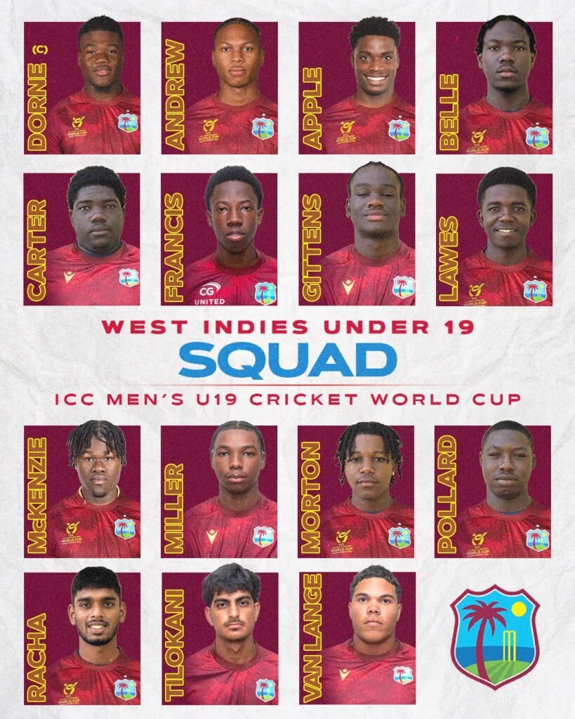 The West Indies will be captained by Joshua Dorne, a top-order batter who made his first-class debut last year and has emerged as a composed leader beyond his age. His deputy, all-rounder Jonathan van Lange, adds balance and versatility to a side shaped through careful planning and sustained exposure to high-level competition.